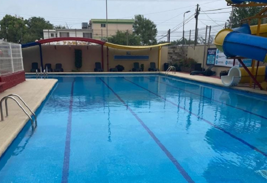 La alberca estaba a reventar de gente que permanecía parada porque era imposible nadar de tan lleno que estaba el lugar.